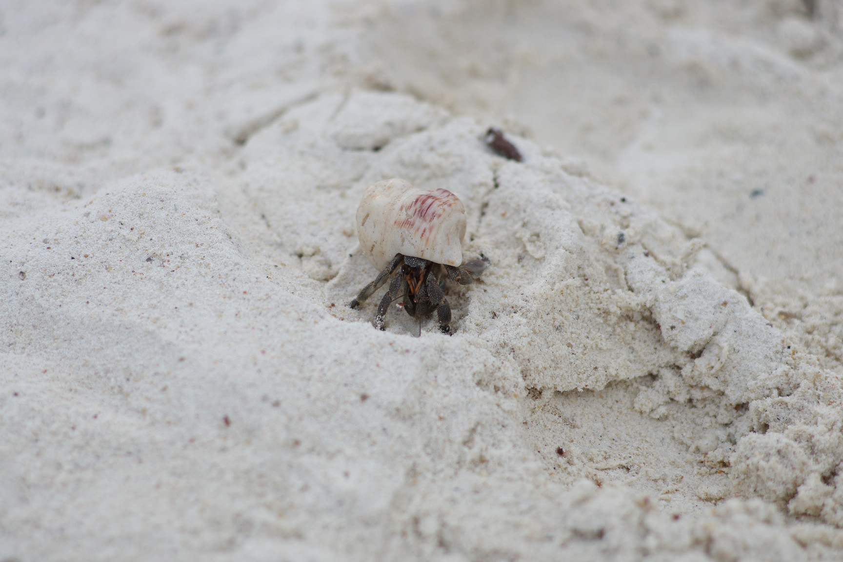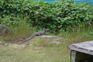Es gab viele lustige Tiere zu sehen: Jeden Morgen begrüßte uns etwas mürrisch ein Waran im Vorgarten, viele bunte und große Schmetterlinge flogen um uns herum, lustige kleine Krebse, die in Muscheln wohnten (wie Schnecken), versuchten sich am Strand heimlich an uns vorbeizuschleichen, an den großen Krebsen schlichen wir uns dann heimlich vorbei ...