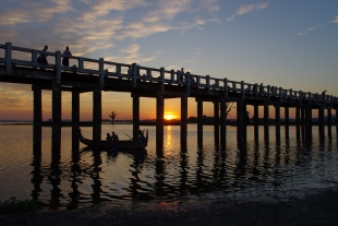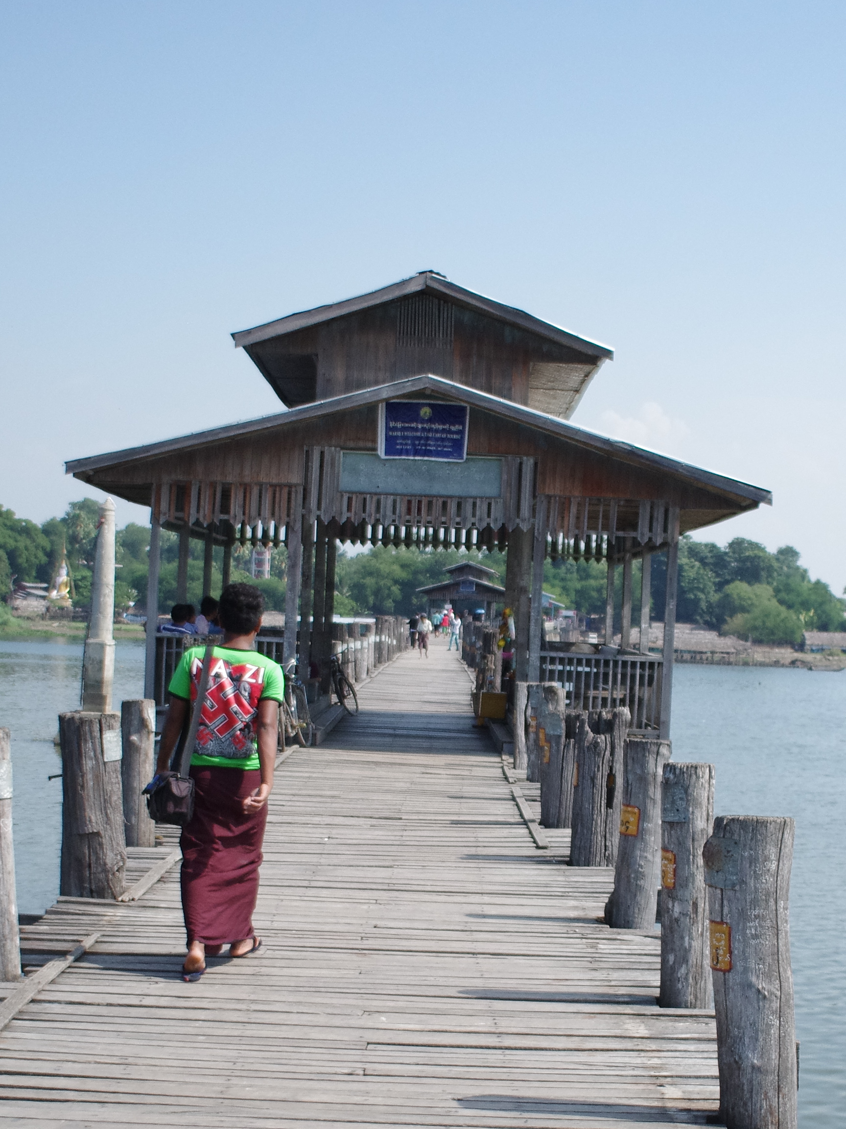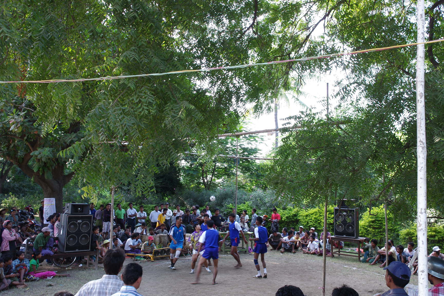 Nicht selten trifft man in Myanmar auf junge und alte (vornehmlich) Männer, die Kreisfußball spielen. Die groben Regeln sind in etwa so: X-Spieler stehen im Kreis und einer in der Mitte. Der Ball wird vom ersten Randspieler zu dem Spieler in der Mitte gekickt. Dieser muss den Ball zum nächsten Randspieler kicken, welcher den Ball wiederum in die Mitte spielen muss. Das Ganze macht man so elegant wie möglich. Fällt der Ball zu Boden, muss der nächste Spieler in die Mitte. Auf dem Weg von Mandalay nach Ava stießen wir auf ein Turnier. Leider kamen wir nicht groß zum Filmen, da wir schnell von Kindern umzingelt wurden, die unbedingt ein bzw. dutzende Fotos von sich sehen wollten. Und wer kann schon Kinderwünsche abschlagen ... Bei unserer Fahrradtour nach Amarapura gab es zwei Highlights: ein toller Sonnenuntergang auf der ehemals vergoldeten U-Bein-Brücke und extrem-voyeuristische Touristenmassen bei einer Mönchsspeisung: