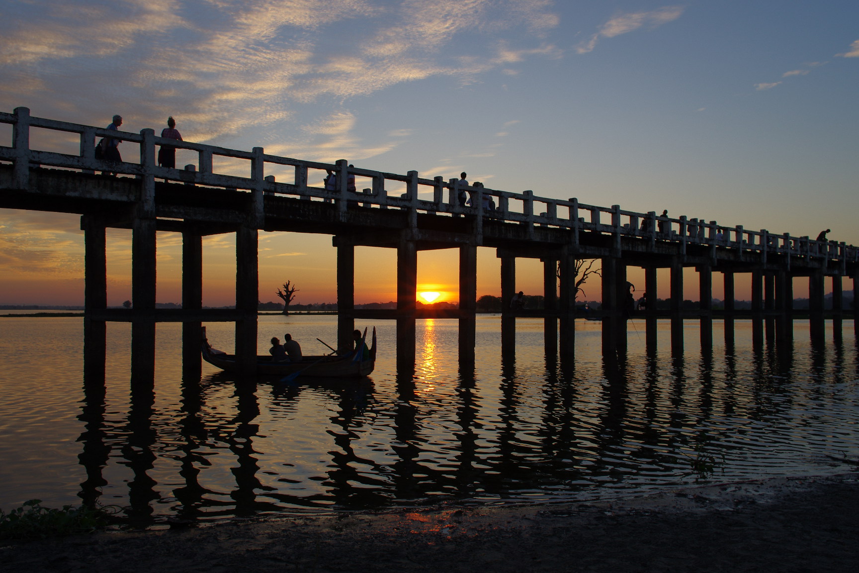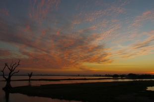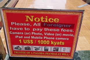 Hier das Video zur Mönchsweihe. Nach der hier gezeigten Zeremonie machen sich die Anwesenden auf den Weg ins Kloster. Dort werden den jungen Burmesen die Haare abrasiert. Sie bleiben dann mindestens eine Woche im Kloster. Nach dieser Woche können sie selbst entscheiden, wie lange sie noch im Kloster leben möchten. In der Regel werden die Mönchsweihen nach dem November-Vollmond vorgenommen. Anlässlich dieses Vollmonds gibt es ein großes Fest in Myanmar (mit Rummel und allem Pipapo), bei welchem die Mönche neue Gewänder erhalten. In den Wochen davor wird dafür lautstark Geld gesammelt. Dazu werden an vielen Klöstern und Pagoden große Stände mit riesigen Boxen aufgebaut, wo von früh morgens bis spät in die Nacht hinein extrem laute Popmusik, traditionelle Musik oder Gebete abgespielt werden, um die Leute zum spenden zu animieren. Zusätzlich fahren noch LKWs, Pick-ups und Busse mit lautstarker Techno- und Popmusik durch die Straßen und auf den Fahrzeugen tanzen junge Burmesen wild herum. Für uns war dies einerseits Terror pur, andererseits aber auch sehr spannend, dieses Spektakel erleben zu dürfen. Das Video gibt einen schönen Eindruck von dem, was wir hier tagelang erleiden mussten: Am Abend sind wir noch auf den Sagaing-Hill gefahren, um von dort aus den Sonnenuntergang über Sagaing anzuschauen: Am nächsten Tag ging es nach Mandalay, das mit folgenden Attraktionen aufwarten kann: